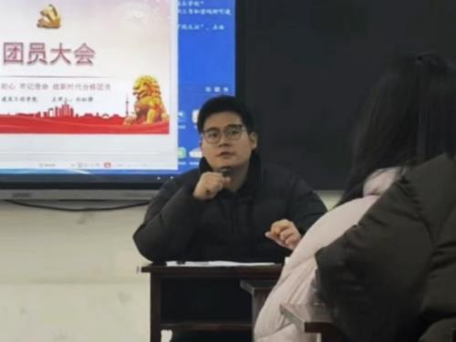 建筑工程学院学生工作办公室副主任、团总支副书记李超在培训开篇讲话中,全面回顾了过去在团组织引领下所取得的工作成效,对全体团员的努力予以肯定。同时,他着眼未来,着重强调新时代团员肩负的重要使命,鼓励团员们在学习、生活和社会实践中充分发挥先锋模范作用,以实际行动带动身边同学,共同营造优良学风与和谐校园文化。他还特别强调团员积极向党组织靠拢的重要意义,并深入阐述了如何在实际中积极向党组织靠拢,为团员们指明了努力方向。